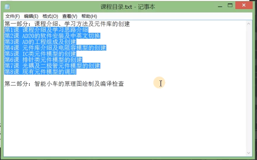 目前学习第一部分:课程介绍,学习方法及元件库的介绍