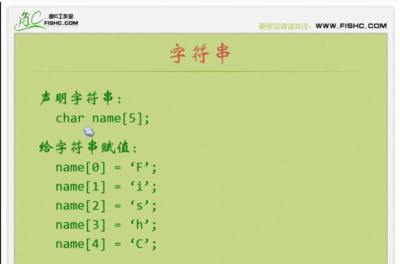 char a[6]={'F','a','K',''e,'r','\n'};//需要使用\n进行结尾 不然会乱码